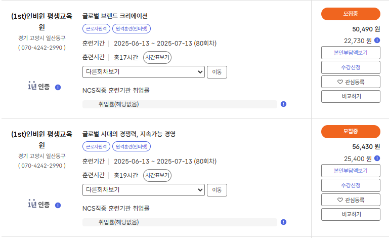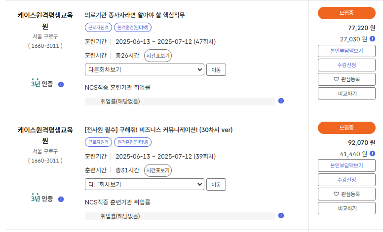 - ✅ 지원금액: 최대 500만 원, 수강료 최대 100% 지원