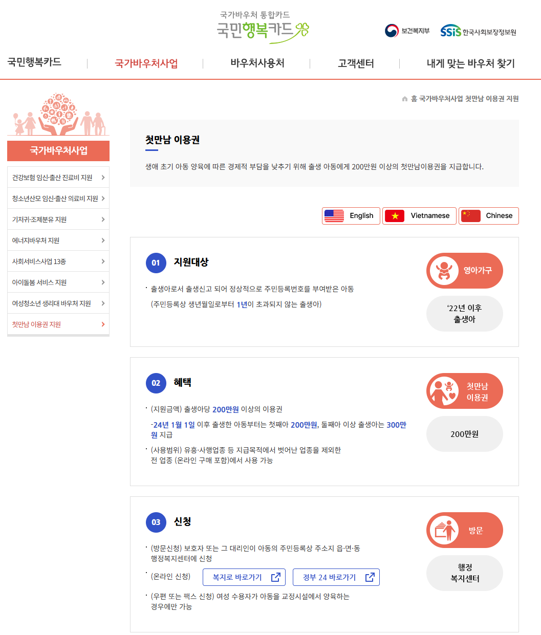 첫만남이용권 신청방법, 국민행복카드 발급 절차, 바우처 사용처,