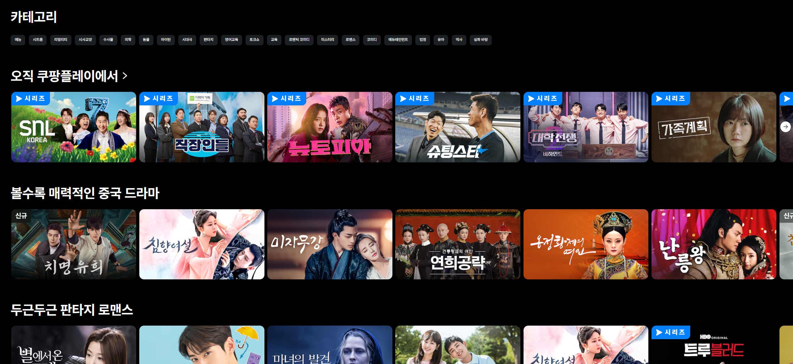 - 기존에는 쿠팡 와우회원 전용이었던 쿠팡플레이를, 이제는 누구나 광고만 보면 월 이용료 없이 이용할 수 있습니다.
