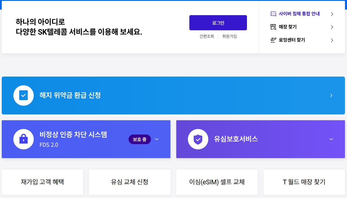 - 유심 교체 → 가까운 대리점 방문 또는 사전 예약